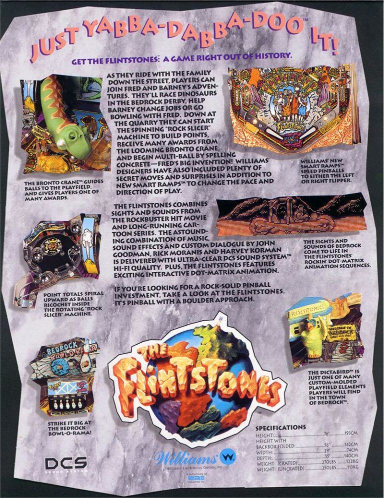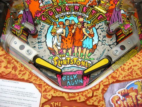 Flintstones pinball machine was based on The Flintstones film. This game also featured speech provided by John Goodman, Rick Moranis and Harvey Korman reprising their respective roles, as well the theme song from the TV series.