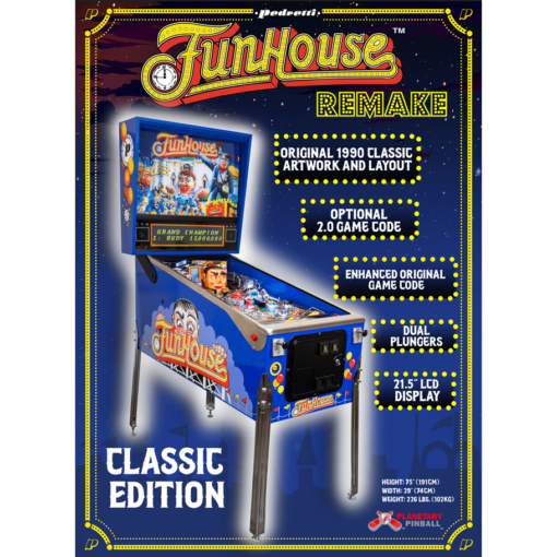Pedretti Gaming (Pedretti), in partnership with Planetary Pinball Supply Inc. (PPS), announces their first pinball machine, Funhouse Remake. Inspired by the original 1990 classic, Funhouse Remake combines the gameplay of the original machine with updated technology and reimagined artwork, creating an unforgettable pinball experience for players. Funhouse Remake machines are available in two models: Classic Edition and Midnight Limited Edition models.