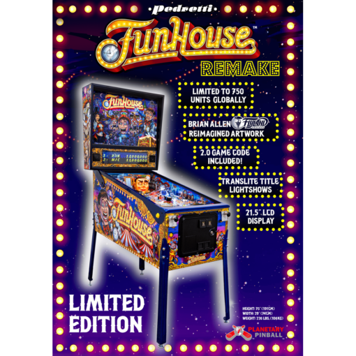 Pedretti Gaming (Pedretti), in partnership with Planetary Pinball Supply Inc. (PPS), announces their first pinball machine, Funhouse Remake. Inspired by the original 1990 classic, Funhouse Remake combines the gameplay of the original machine with updated technology and reimagined artwork, creating an unforgettable pinball experience for players. Funhouse Remake machines are available in two models: Classic Edition and Midnight Limited Edition models.