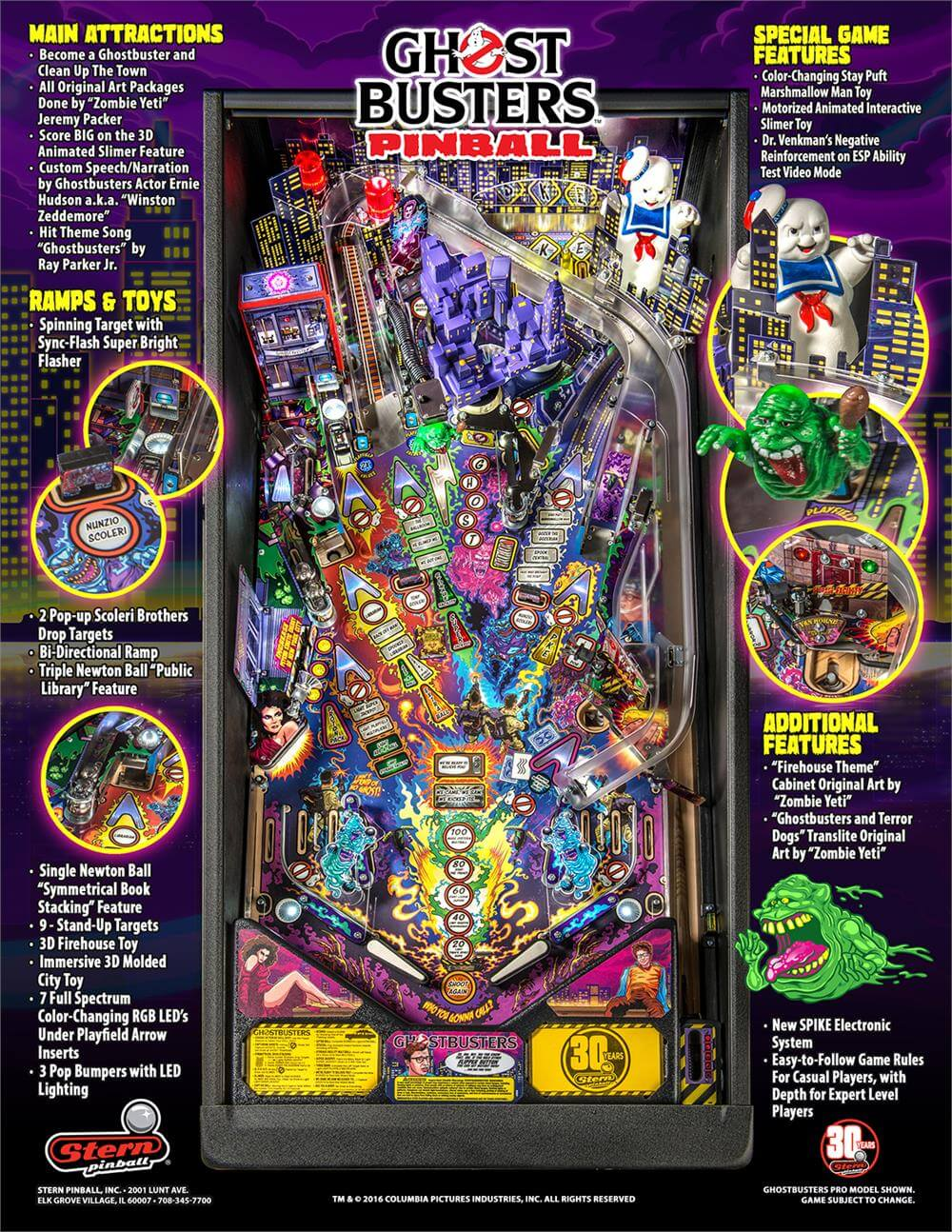 The Ghostbusters pinball machine celebrates the much loved original movie produced by Columbia Pictures and gives fans a fun, entertaining, high energy pinball experience, said Gary Stern, Chairman and CEO of Stern Pinball, Inc. After all, its the Ghostbusters!