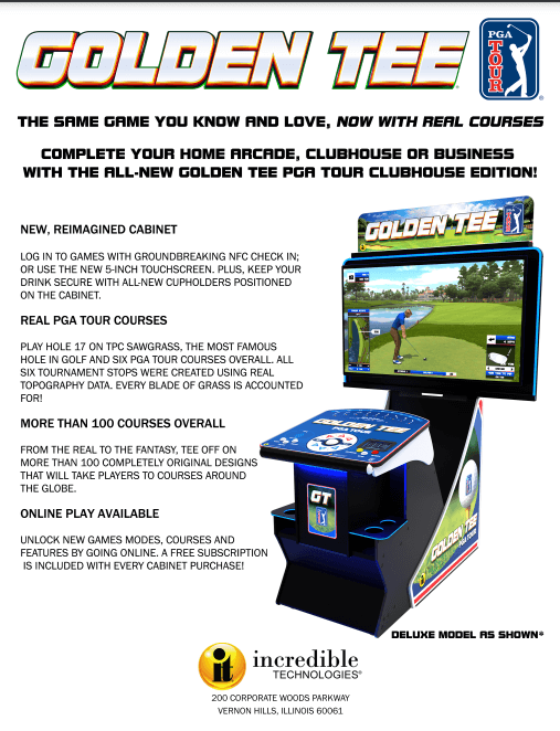 Incredible Technologies and the PGA TOUR have joined forces to bring the fun and excitement of real PGA TOUR courses to the fantasy world of Golden Tee Golf.
