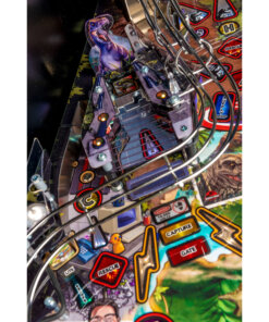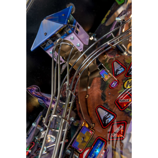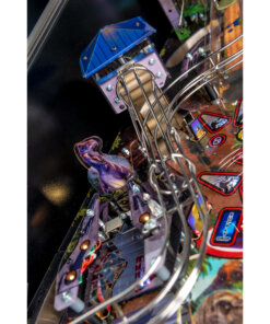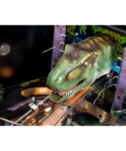 The Premium and Limited Edition models feature an amazing animatronic ball-eating, ball-throwing T. Rex that interacts with the ball and the player. These models also include an interactive Raptor and Raptor Pen featuring a ball-lock mechanism guarded by a motorized gate. The action does not let up with unique mosquito-in-amber pop bumpers and a custom metal horizontal helicopter spinner.