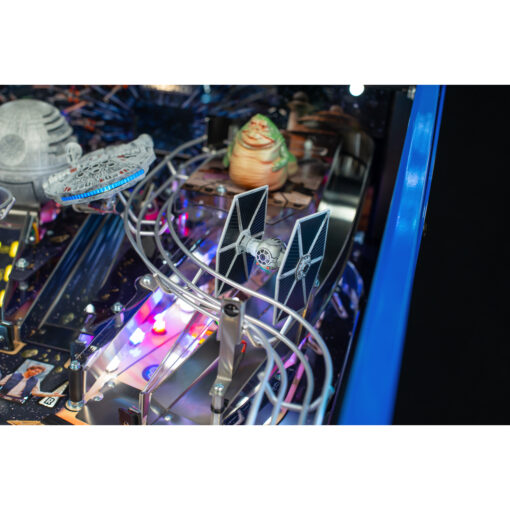 In Stern Pinball’s ***Star Wars: Fall of the Empire*** pinball games; players will take part in the adventures that started it all and experience iconic *Star Wars* -inspired moments through a pinball experience like no other. Players will take down the AT-AT by attaching their snowspeeder’s tow cable and shooting the spiral ramp to send it crashing down, mirroring the breathtaking scene from *Star Wars: The Empire Strikes Back* . Destroy the Death Star II from *Star Wars: Return of the Jedi* by lowering shields on the battle station during Death Star Multiball to save the galaxy. Players can also escape from Cloud City when reactivating the *Millennium Falcon*’s hyperdrive by hitting the center jump ramp to escape to hyperspace. Throughout the pinball experience, players will enter Jabba the Hutt’s Sarlacc Pit, battle stormtroopers, defeat TIE fighters, and even mimic using the Force to save your ball on the journey to defeating the Empire. Feel the power of the dark side as you enjoy special Darth Vader-inspired modes.