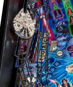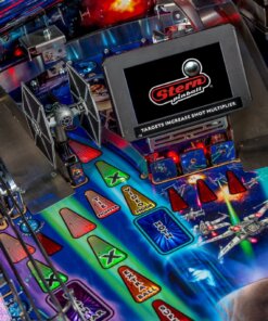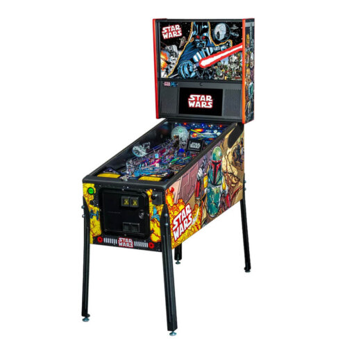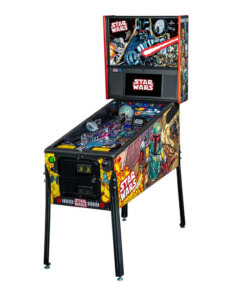 The Star Wars themed Comic Art Pro and Star Wars Comic Art Premium machines made by Stern are packed with features that provide an irresistible game experience. The game includes select dialogue and footage from the original Star Wars trilogy, color-changing LED-lighted inserts, and a sculpted TIE fighter. All models feature two LCD screens. The Premium model also features art representing an exploding Death Star, a sculpted LED-lit Millennium Falcon and an interactive hyperspace loop that encircles the playfield and can accommodate up to 5 pinballs at once.